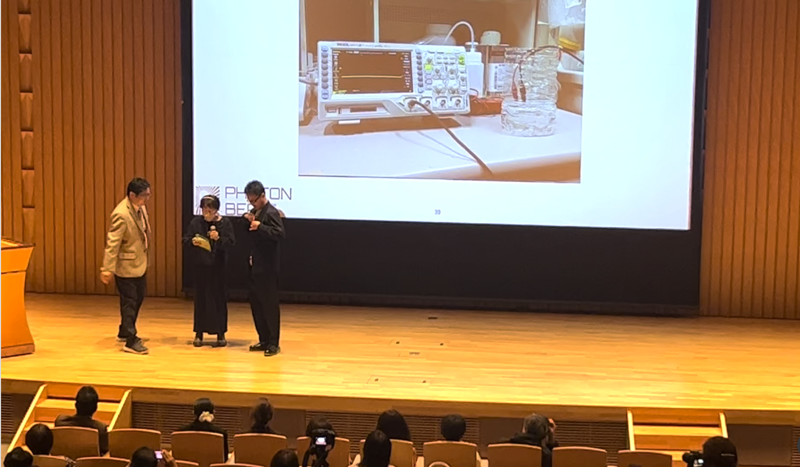 2025年9月4日 日本M&Aセンター会議室で、2年ぶりの小川陽吉のフォトンビームセミナーを開催しました。動画の方もご確認ください。金融機関の方ばかりの方に、メガネ照射で、レンズの劣化が戻る、スマホの音が良くなる、水がおいしくなる、遠隔共鳴全てご確認いただきました。