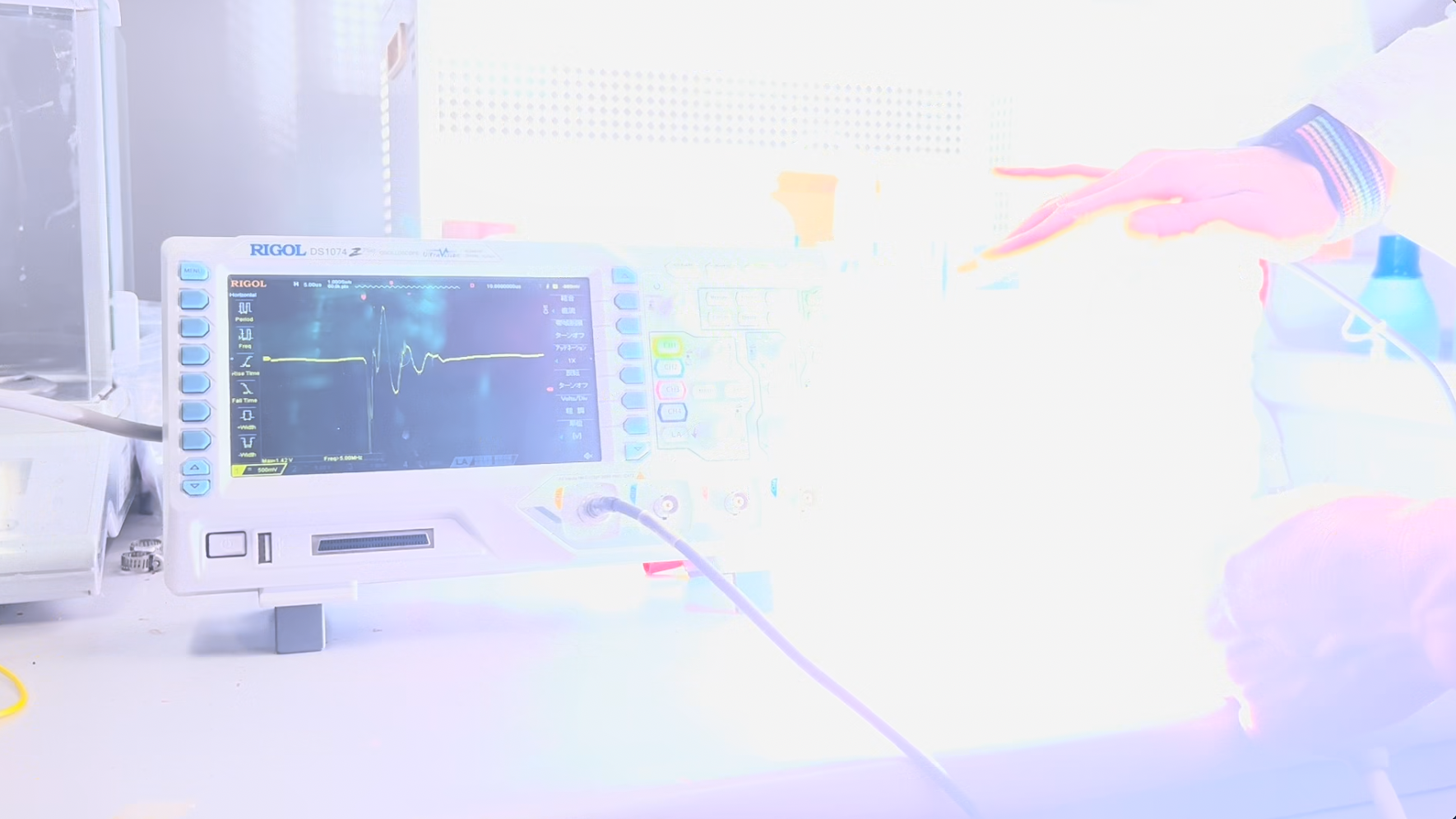水への照射以外に、電極への直接照射でも電圧発生を確認できました。
