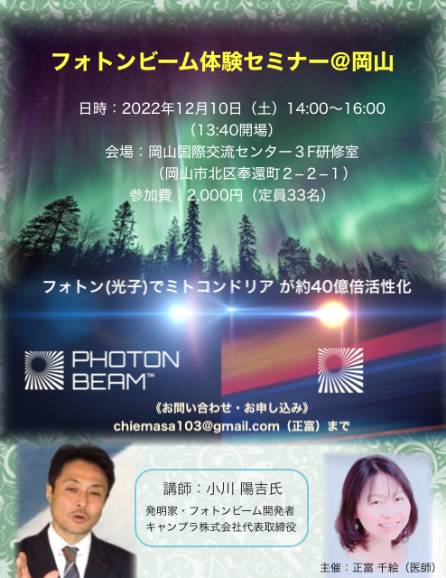 2023年3月28日 大阪セミナーの動画をアップしました。動画、PHOTON BEAMをご確認ください。