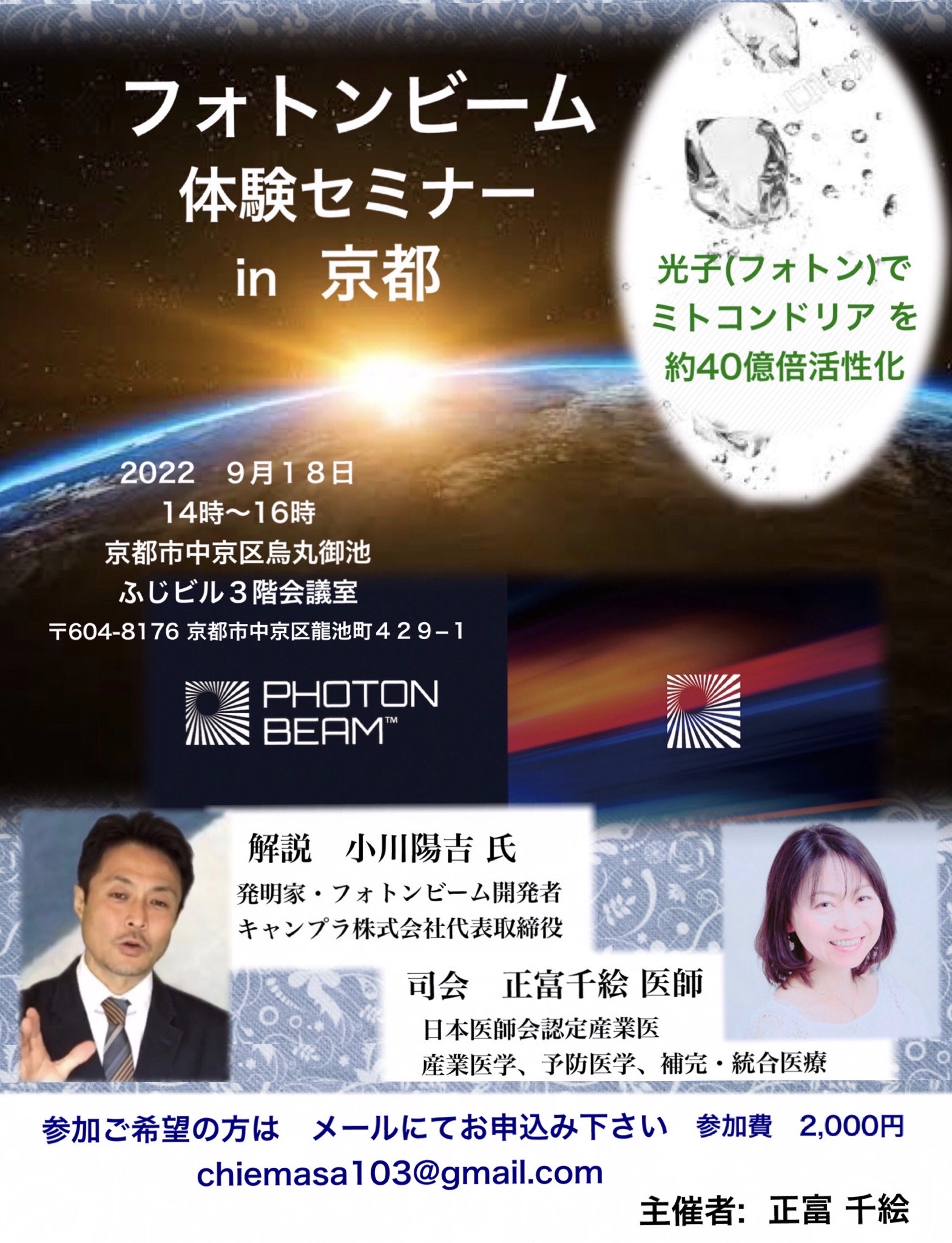 2022年9月18日 正富千絵医師主催のフォトンビーム™体験会@京都を開催。お陰様で満員御礼