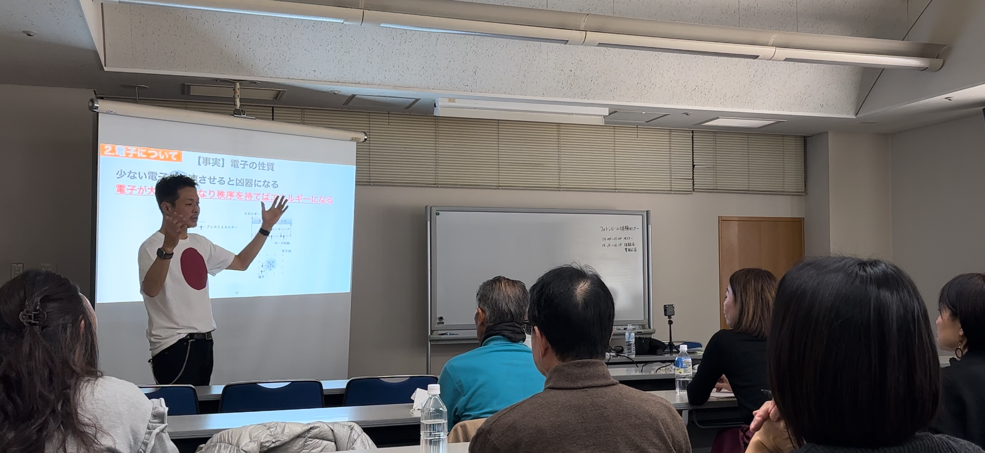 2025年9月13日 (株)水と光子主催のフォトンビームエキスパートセミナー第2期性をキャンプラ(株)サロンにて開催。参加者8名 メガネのレンズが購入時のようになる。スマホの音楽の質が良くなる事も全員確認。